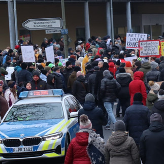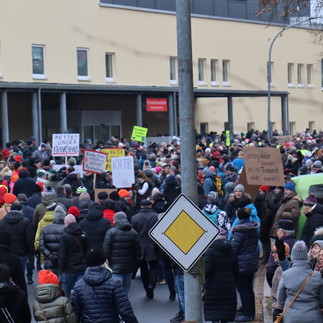 Tausende von Demonstrierenden sammeln sich in der Mähringer Straße in Tirschenreuth